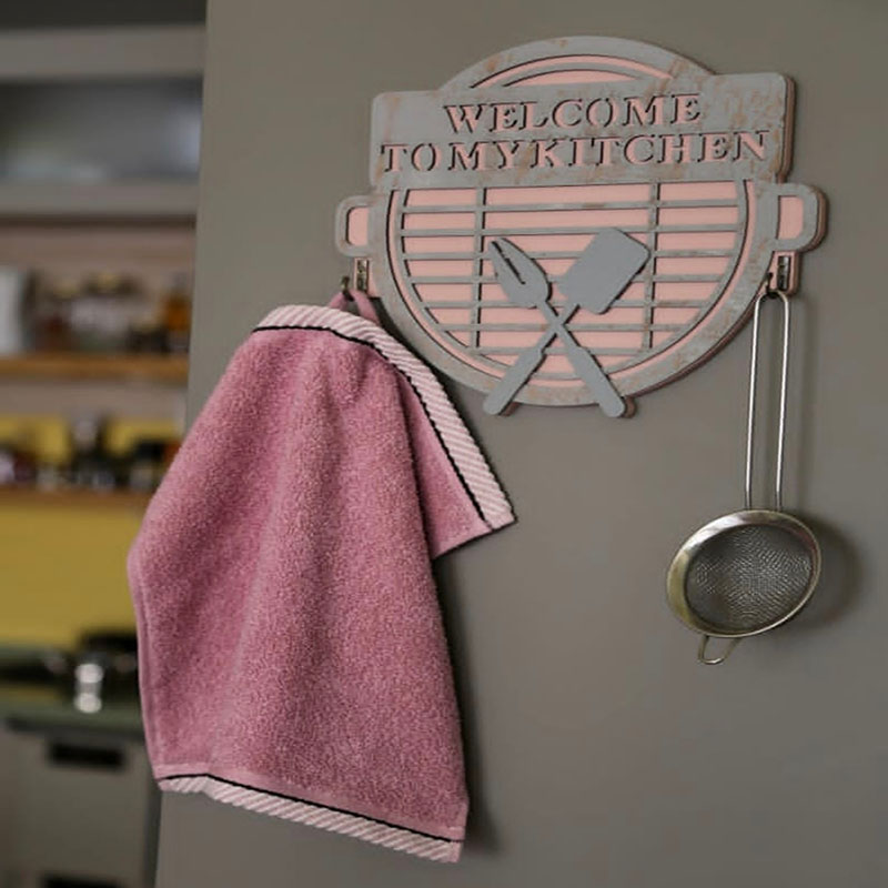 آویز حوله چوبی دکوری “Welcome To My Kitchen” دقیقاً برای همین فضا طراحی شده؛