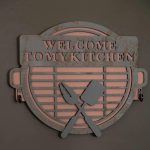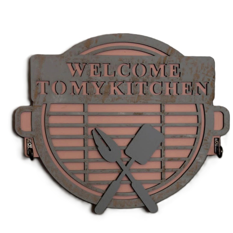 نوشتهی برجستهی WELCOME TO MY KITCHEN روی این آویز، اولین چیزی است که توجه را جلب میکند.