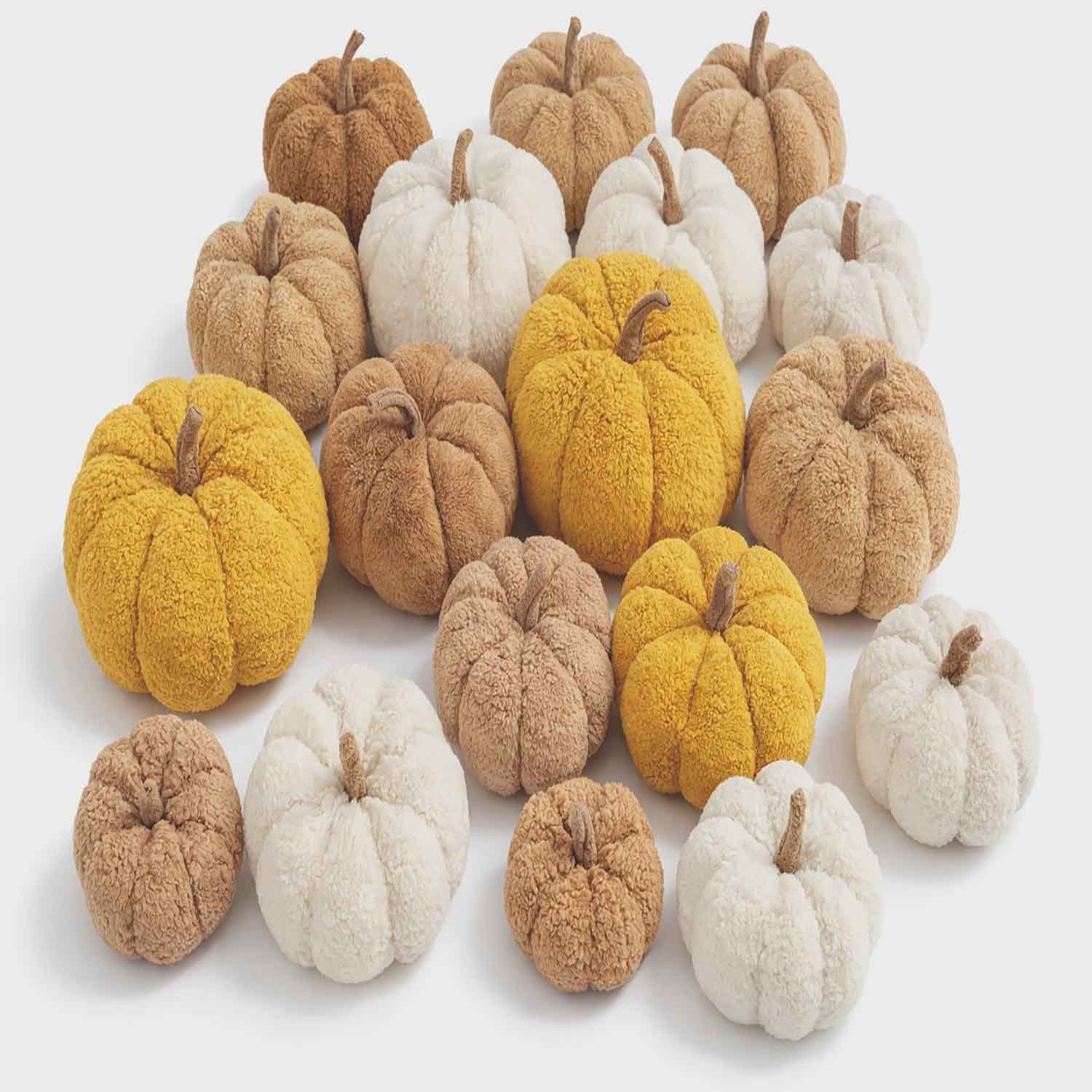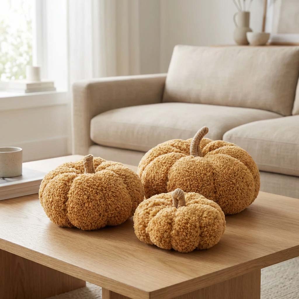 اگر به دنبال یک دکوری خاص، لطیف و متفاوت برای ایجاد حس گرما و صمیمیت در فضای خانه هستید، ست سهتایی کدو دکوری پارچهای تدی انتخابی هوشمندانه و ماندگار است. این ست با طراحی حجیم، بافت پرز بلند و رنگ گرم، بهراحتی فضای منزل را از حالت ساده به دکوری شیک و ترندی تبدیل میکند.